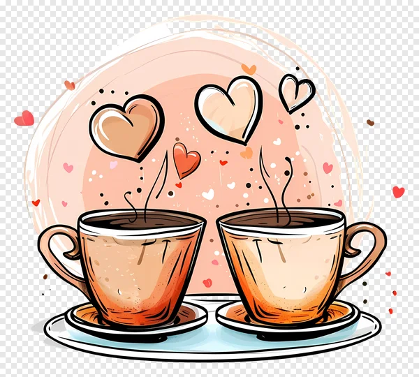 Download this charming 'Coffee & Love' PNG image for free! Featuring two steaming cups of coffee adorned with floating hearts, this illustration is perfect for Valentine's Day, romantic designs, coffee shop graphics, or adding a touch of warmth to your projects. High-quality, transparent background for easy integration. Enhance your website, social media, or print materials with this delightful design. Get your free download now!