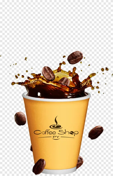 Download this stunning coffee splash PNG image for free! Featuring a vibrant coffee cup with a dynamic splash, coffee beans, and a stylish 'Coffee Shop PY' logo. Perfect for websites, social media, posters, and any coffee-related project. High-resolution and transparent background for easy integration. Enhance your designs with this delicious and eye-catching coffee graphic today!