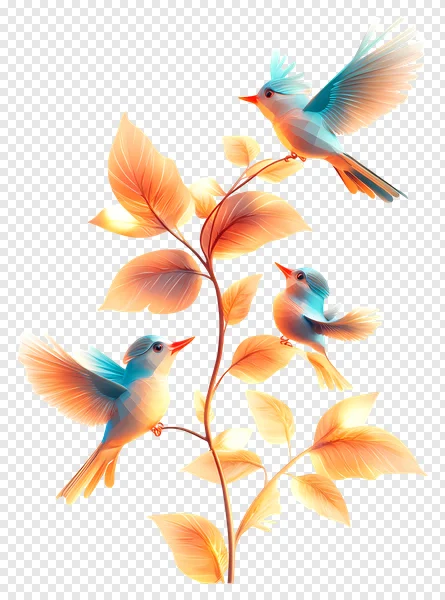 Download this beautiful, high-quality PNG image of colorful birds perched on a golden branch with vibrant leaves! Perfect for graphic design, illustrations, spring themes, nature projects, and more. This transparent background PNG is free to use for both personal and commercial projects. Enhance your designs with these charming birds – download now and add a touch of nature's beauty to your creations!