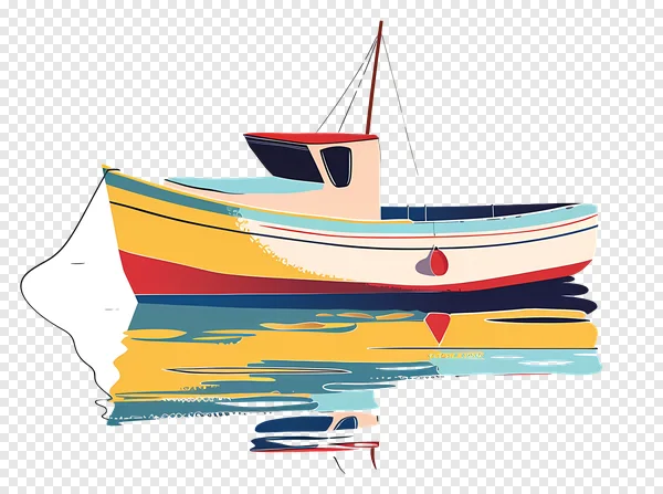 Download this vibrant and charming fishing boat PNG image for free! Perfect for nautical designs, illustrations, kids' projects, or adding a splash of color to your website. This high-quality, transparent background image features a classic boat with a unique, artistic style. Enhance your creative projects with this beautiful and versatile graphic – download now and start creating!