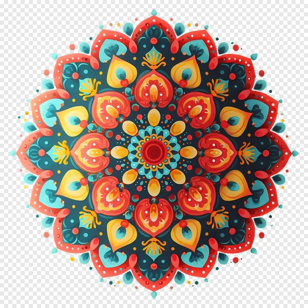 Download this stunning, high-resolution mandala PNG image for free! Perfect for adding a vibrant touch to your designs, crafts, or digital art projects. Featuring a beautiful blend of red, orange, teal, and yellow hues, this intricate floral pattern is ideal for backgrounds, invitations, scrapbooking, and more. Enhance your creativity with this free-to-use mandala graphic. Get your free download now!