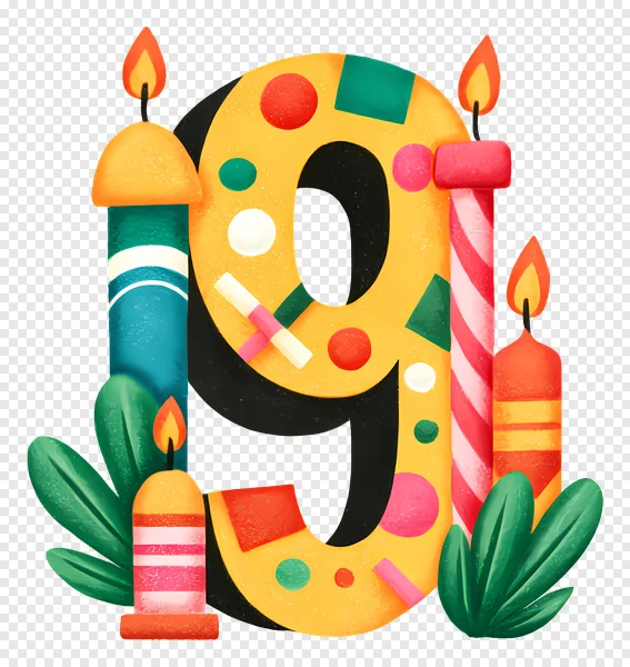 Download this Colorful Number Nine with Candles png PNG image with transparent background which is free of cost. You don't need to remove background anymore. Scroll down to download more similar styles of Colorful PNG images. They are perfectly suitable for designing presentations, stickers, banners or sharing on social media.