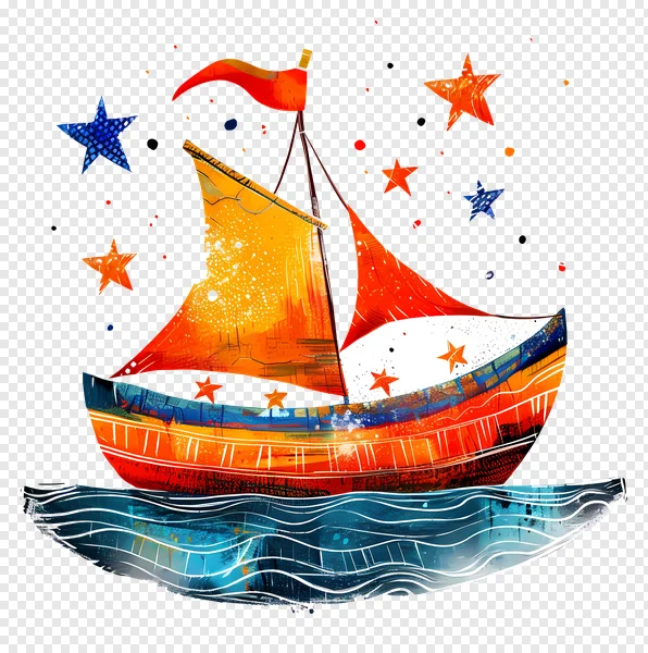 Download this vibrant and whimsical sailboat illustration with sparkling stars! Perfect for children's projects, fantasy art, website graphics, or adding a touch of magic to your designs. This high-quality PNG image features a unique, colorful style with a transparent background for easy integration. Get your free download now and let your creativity sail!