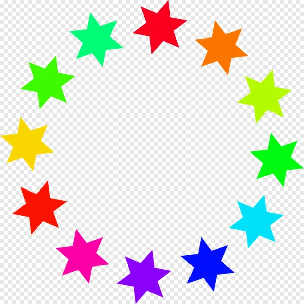 Download this vibrant and eye-catching star circle PNG image for free! Perfect for adding a playful touch to your designs, presentations, or website. Featuring a ring of colorful stars in a rainbow spectrum, this transparent background graphic is ideal for various creative projects. Use it for backgrounds, decorations, or as a unique element in your artwork. Get your free download now!