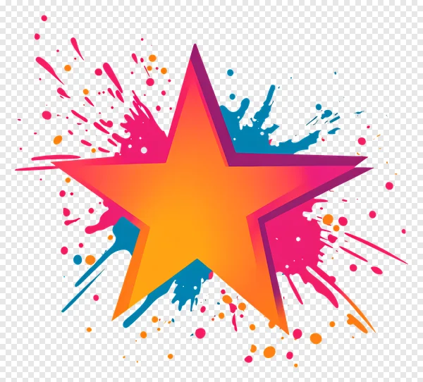 Download this vibrant and eye-catching colorful star splash PNG image for free! Perfect for graphic design projects, posters, social media, and more. Featuring a bright orange star with dynamic paint splatters in pink, blue, and purple against a black background, this high-quality PNG is ideal for adding a burst of energy to your creations. Get instant access and use it royalty-free today!