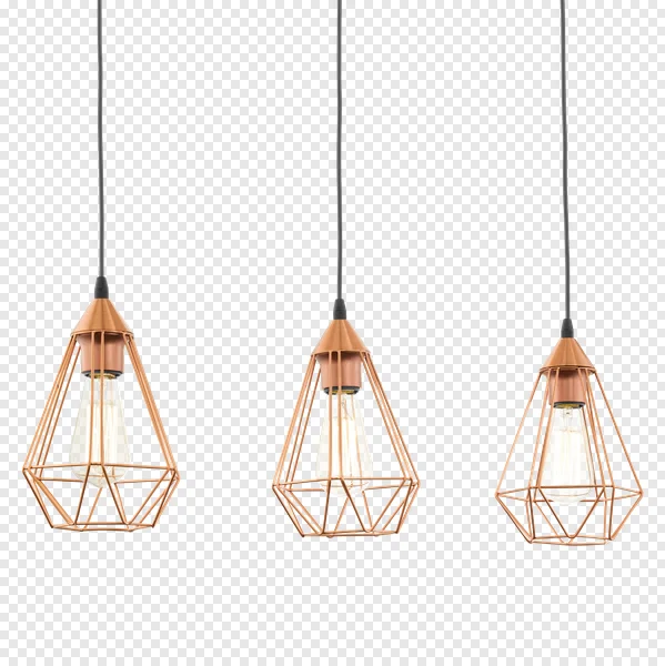 Download this high-quality, transparent PNG image of three stylish copper wire cage pendant lights! Perfect for interior design projects, website graphics, presentations, or adding a modern touch to your digital artwork. This free-to-use image features a contemporary lighting fixture with a geometric diamond-shaped cage and warm-toned Edison bulbs. Enhance your designs with this versatile and visually appealing element. No attribution required!