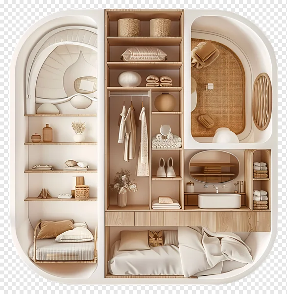 Download this stunning, high-resolution PNG of a modern, beige-toned interior cutaway! Featuring a bedroom, bathroom, closet, and lounge area, this image is perfect for interior design projects, architectural visualizations, mood boards, and website graphics. Use it to showcase minimalist aesthetics, warm color palettes, and contemporary living spaces. Get your free download now and elevate your designs!
