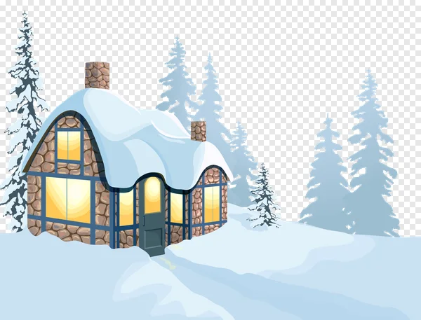 Download this captivating free PNG image featuring a charming stone house nestled in a serene winter landscape. The cozy cabin is blanketed in fresh snow, with warm, inviting light glowing from its windows, promising comfort indoors. Surrounded by snow-dusted pine trees and a tranquil snowy ground, this high-quality illustration is perfect for adding a touch of winter magic to your Christmas cards, holiday designs, seasonal projects, websites, or social media posts. Enhance your creative works with this picturesque winter wonderland scene. Transparent background included for easy integration.