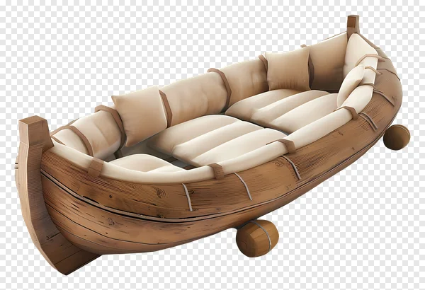 Dive into comfort with our free, high-quality PNG of a cozy wooden boat, complete with plush beige cushions and pillows. This unique vessel, resembling a comfortable floating sofa, is perfect for adding a touch of relaxation and nautical charm to your projects. With its transparent background, it seamlessly integrates into any graphic design, illustration, website, or game development. Ideal for themes of leisure, escape, adventure, or simply a charming, rustic aesthetic. Download this clean, cutout image now and enhance your creative work effortlessly!
