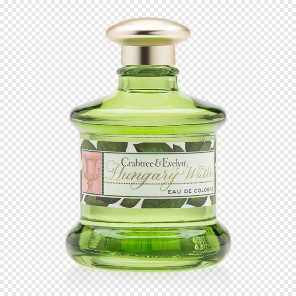 Download this stunning free PNG of Crabtree & Evelyn's classic Hungary Water Eau de Cologne. This high-quality image features the elegant green glass bottle with its distinctive gold cap and beautifully designed label, showcasing the vintage charm of this beloved fragrance. Perfect for beauty blogs, e-commerce product listings, graphic design projects, or adding a touch of sophisticated personal care to your digital content. Get this transparent background image instantly for your creative needs!