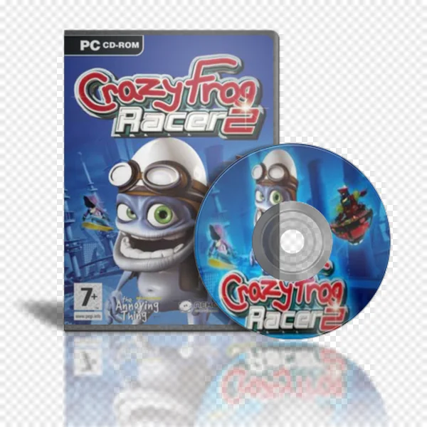 Tags: 7+ rating Crazy Frog Crazy Frog Racer 2 PC CD-ROM PC gaming The Annoying Thing cartoon frog character art digital art free PNG game box game cover game disc gaming nostalgia kart racing racing car racing game retro gaming transparent image video game