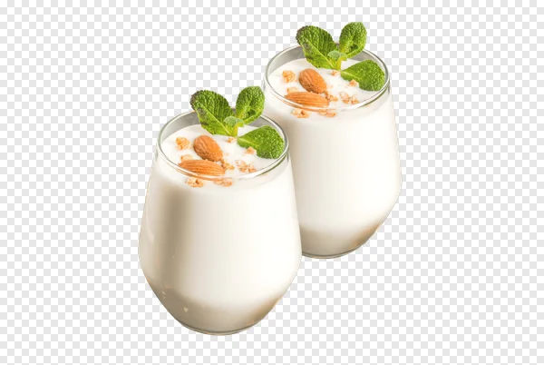 Discover our high-quality, free PNG image of two delectable creamy yogurt parfaits. Each glass features a rich, white dairy or plant-based yogurt, generously topped with crunchy almonds, wholesome granola or cereal bits, and a garnish of fresh, vibrant mint leaves. Perfect for enhancing your design projects, recipe blogs, health and wellness content, menus, or promotional materials. This versatile transparent PNG makes integration into any background effortless. Download this refreshing and nutritious food image now to add a touch of fresh, healthy elegance to your creative work!