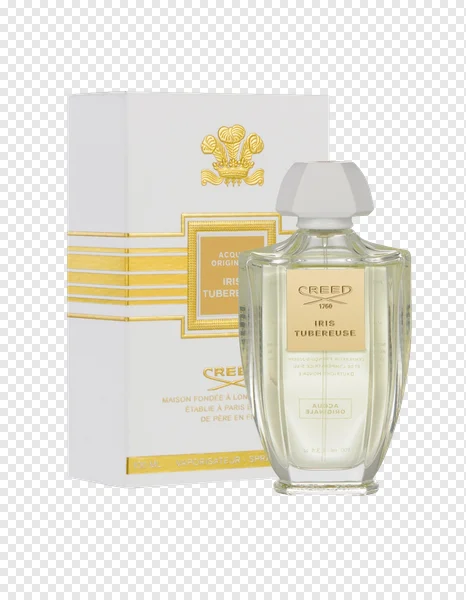 Tags: Creed Creed 1760 Iris Tuberose beauty product designer perfume eau de parfum elegant scent fashion accessory floral fragrance fragrance bottle gold details luxury perfume perfume box personal care premium brand product photography scented spray sophisticated transparent PNG white packaging