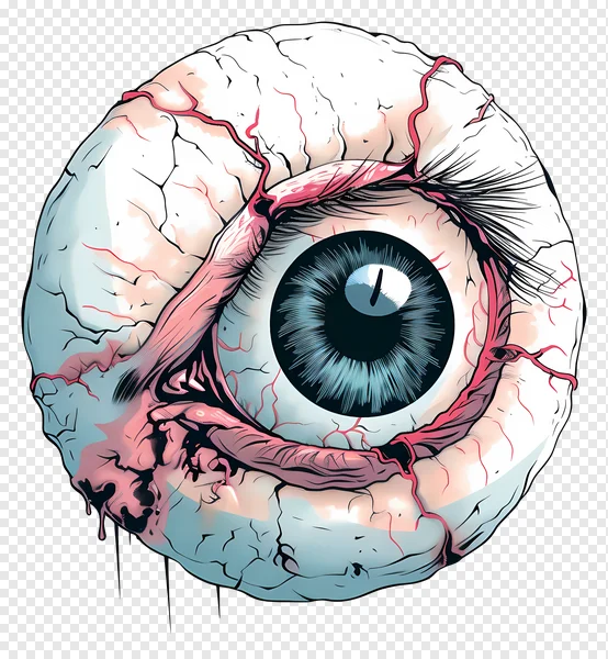 Unleash your creativity with this striking free PNG of a creepy, stylized eyeball illustration! Featuring intricate red veins, exposed muscle tissue, a distinctive vertical pupil, and a brain-like textured sclera, this eerie graphic is perfect for Halloween designs, horror themes, sci-fi projects, medical illustrations, or unique artistic compositions. The high-quality, transparent background makes it easy to integrate into your designs. Download this captivating and slightly grotesque eye PNG today to add a unique, unsettling touch to your next poster, flyer, game asset, or digital art piece. Get your free spooky eyeball download now!