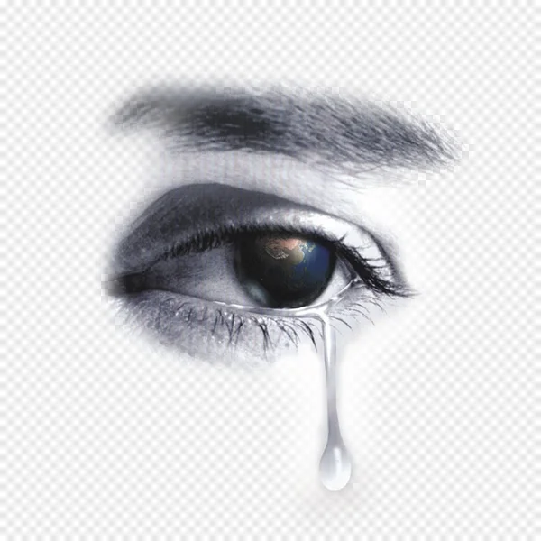 Download this powerful Crying Earth Eye PNG for free! This striking grayscale image features a human eye with the vibrant Earth visible in its pupil, shedding a crystal-clear teardrop. It's a poignant symbol of global concern, environmental crisis, climate change, and humanity's sorrow for our planet. Perfect for impactful awareness campaigns, presentations on sustainability, educational materials, graphic design projects, or blog posts addressing ecological issues. Get this high-quality, transparent PNG to convey deep emotion and urgent calls to action for environmental protection.