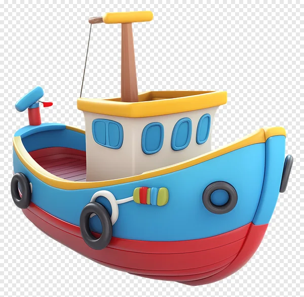 Download this adorable, high-quality 3D cartoon boat PNG image for free! Featuring a vibrant red hull, bright blue deck, and a cheerful yellow cabin with cute round windows, this illustration is perfect for adding a playful touch to any project. Its smooth, glossy finish and transparent background make it ideal for kids' educational materials, nautical-themed designs, website graphics, presentations, and creative art projects. Get this cute toy boat icon and enhance your digital creations effortlessly. Available in stunning detail for all your design needs.