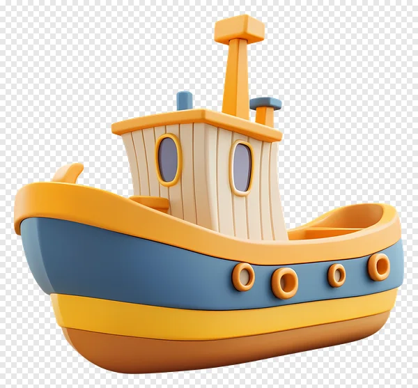 Dive into your creative projects with this charming 3D cartoon fishing boat PNG! Featuring a delightful blend of blue, orange, and cream colors, this stylized vessel boasts a cheerful design with prominent portholes and a fun mast-like structure. Perfect for kids' nautical themes, educational materials, game assets, web design, or any project needing a touch of maritime whimsy. This high-quality image comes with a transparent background, making it easy to integrate into your designs. Download this adorable toy ship graphic for free and set sail on your next design adventure!