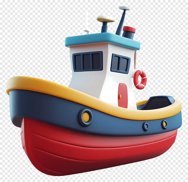 Discover our charming 3D cartoon tugboat PNG, perfect for adding a touch of nautical fun to your projects! This high-quality, vibrant illustration features a cute red hull, dark blue midsection, and yellow trim, topped with a white cabin, light blue roof, windows, and a classic red lifebuoy. Ideal for children's designs, educational materials, marine-themed websites, game assets, or any creative work needing a friendly boat icon. Download this free, transparent PNG image today to easily integrate a playful marine element into your digital art, presentations, or print designs. Get your free tugboat PNG now!