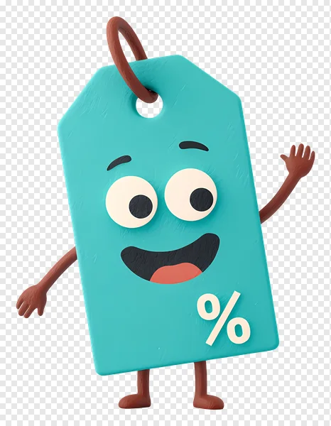 Download this adorable free PNG of a 3D animated price tag character! This cheerful teal discount label features a friendly waving hand, a big smile, and a prominent percentage symbol, making it perfect for your sales promotions, special offers, e-commerce graphics, or marketing campaigns. Use this transparent, high-quality illustration to add a fun and engaging touch to websites, social media posts, presentations, and more. Get your free download now and bring some vibrant energy to your next project!