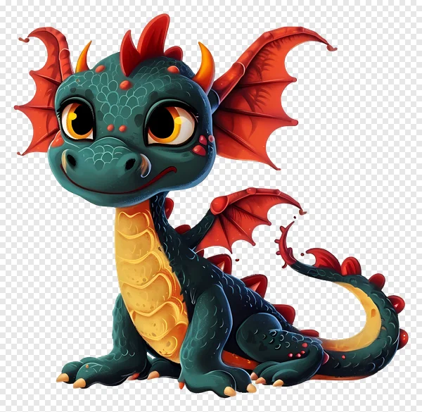 Unleash your creativity with this charming free PNG of an adorable baby dragon! Featuring vibrant teal-green scales, striking red wings and spines, and a warm yellow belly, this cute cartoon dragon is posed sitting with a friendly smile and big, expressive yellow eyes. Perfect for children's books, fantasy-themed projects, scrapbooking, digital art, or as a fun sticker. With a transparent background, it's ready to drop into any design. Download this high-quality mythical creature graphic for free today and add a touch of magic to your creations!