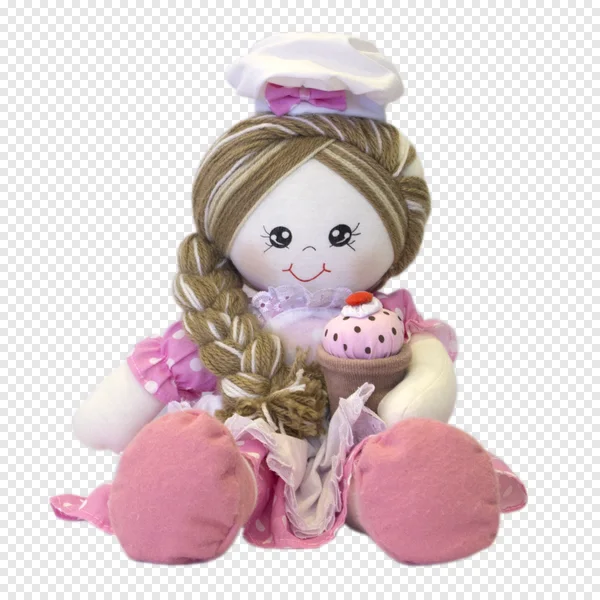 Download this charming, high-quality Free PNG of a cute baker rag doll! This adorable chef girl features a sweet embroidered face, braided brown and white hair, a white chef's hat with a pink bow, and a lovely pink polka dot dress. She's cheerfully holding a delicious pink cupcake topped with sprinkles and a cherry, ready for a baking adventure. Perfect for adding a delightful and whimsical touch to your crafts, digital designs, party invitations, scrapbooking projects, educational materials, or any creative endeavor. Get this transparent background image instantly to sweeten your next project. No attribution required!