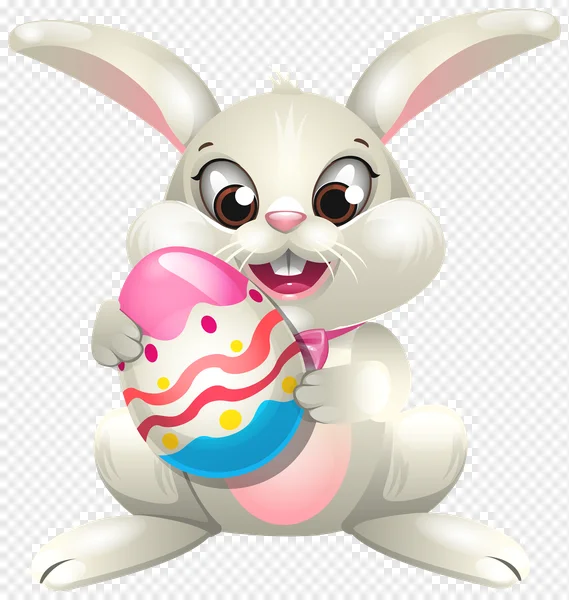 Download this adorable, high-quality free PNG image featuring a cheerful cartoon Easter bunny happily holding a vibrantly decorated Easter egg. With its cute buck teeth, big eyes, and an egg adorned with pink, blue, yellow, and red patterns, this transparent graphic is perfect for all your springtime and holiday projects. Use it for greeting cards, scrapbooking, digital art, website designs, social media posts, or children's crafts. Bring a touch of festive joy and charm to your creations with this delightful Easter illustration. Available for instant free download!