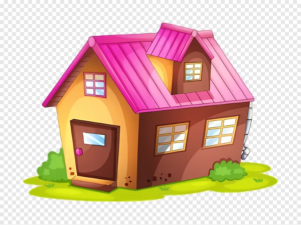 Discover this charming, free-to-download cartoon house PNG, perfect for adding a touch of whimsy to any project. Featuring a vibrant pink roof, cozy yellow and brown walls, multiple windows including a prominent dormer, and lush green bushes on a small patch of grass, this transparent image is ideal for children's books, educational materials, game design, digital scrapbooking, or presentations. Its adorable storybook style makes it a versatile asset for designers, educators, and hobbyists alike. Download this high-quality, transparent background image today to bring this delightful dwelling to life in your creative works!
