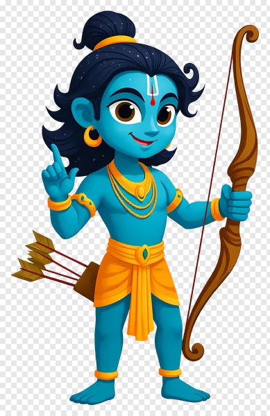 Download this charming and adorable cartoon Lord Rama PNG, featuring the beloved Hindu deity in a cute chibi style. This transparent image showcases Lord Rama with his distinctive blue skin, traditional yellow dhoti, intricate golden jewelry, and the iconic bow and quiver filled with arrows. With his right hand raised in a gesture of blessing or command, this high-quality illustration is perfect for celebrating Diwali, Ram Navami, or enriching any cultural project. Ideal for graphic design, educational materials, religious content, children's books, or adding a divine touch to your digital creations. Get this enchanting mythological character for free!