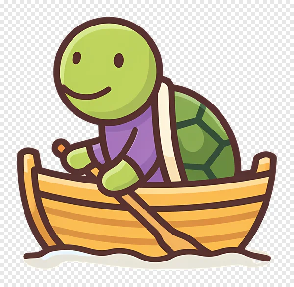Download this adorable cartoon turtle rowing a boat PNG for free! This high-quality illustration features a happy green turtle with a friendly smile, dressed in a purple shirt, expertly paddling a wooden rowboat on calm water. With a transparent background, it's perfect for enhancing your graphic design projects, presentations, educational materials, children's books, websites, or personal crafts. Add a touch of cuteness and adventure to your creations with this charming animal character clip art. Get your free download now and let this cheerful turtle bring a smile to your audience!