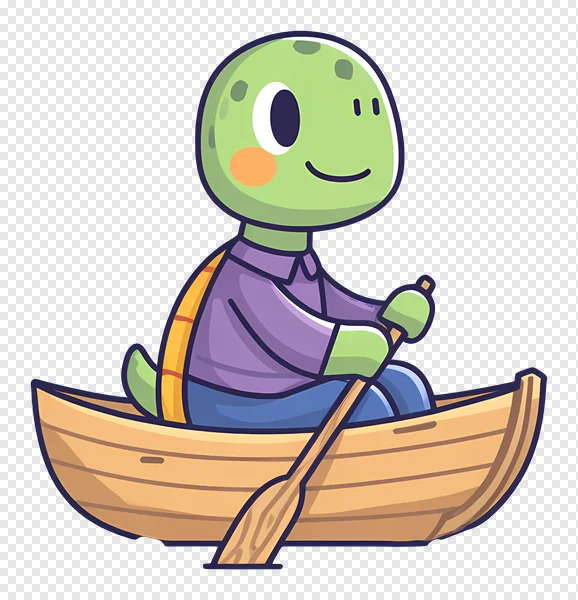 Dive into creativity with this charming, free PNG of a cute cartoon turtle happily rowing a classic wooden boat! Our friendly green turtle, adorned with a purple shirt and blue pants, holds a wooden oar, ready for a water adventure. With its transparent background, this high-quality illustration is perfect for children's books, educational content, presentations, website graphics, or any project needing a touch of whimsical aquatic fun. Download this delightful animal character today for instant charm!