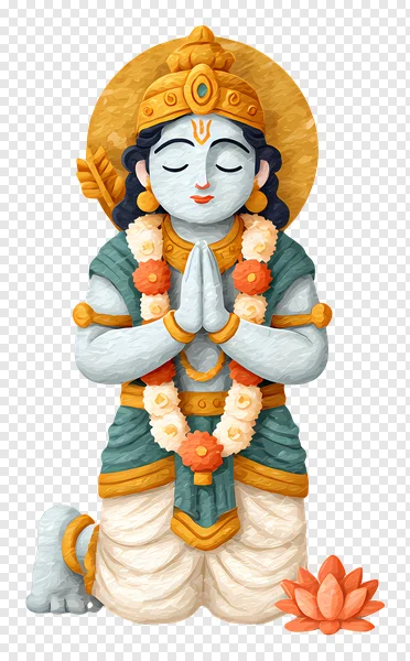 Download this charming and cute cartoon Lord Rama PNG, perfect for adding a touch of divine elegance to your projects. This vibrant chibi-style illustration depicts the beloved Hindu god with striking blue skin, a regal golden crown adorned with jewels, holding a traditional bow, and a quiver full of arrows. Ideal for children's books, religious celebrations like Ram Navami and Diwali, educational materials, graphic design, or spiritual content. The high-quality transparent background ensures seamless integration into any creative work. Get your free Lord Rama PNG today and bring a spiritual yet adorable element to your designs!