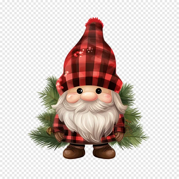 Add a touch of whimsical holiday magic to your projects with this adorable free Christmas Gnome PNG. Featuring a charming gnome sporting a trendy red and black buffalo plaid hat and matching shirt, a fluffy white beard, rosy cheeks, and festive evergreen pine branches. This high-quality, transparent background clipart is perfect for greeting cards, DIY decorations, scrapbooking, digital designs, social media graphics, and more. Download this delightful winter elf illustration instantly to infuse your creations with festive cheer and cozy charm!