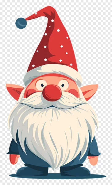 Download this charming Christmas Gnome PNG for free! This adorable cartoon elf features a bright red pointed hat with white polka dots and a playful blue pom-pom, a rosy red nose, wide expressive eyes, and a long, flowing white beard, all set against a transparent background. Perfect for adding festive cheer to your holiday cards, digital designs, scrapbooking, DIY crafts, social media posts, or website graphics. Get this high-quality, free transparent image instantly for all your seasonal creative projects and bring a touch of whimsy to your designs!
