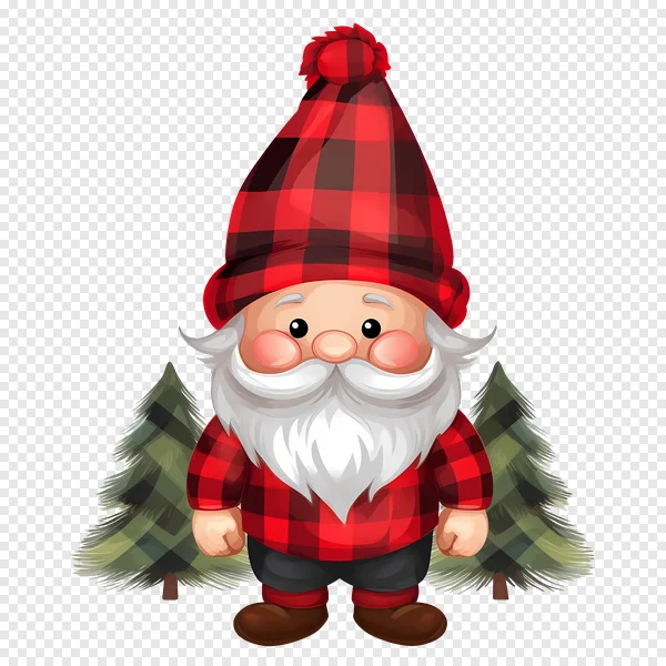 Download this adorable free Christmas Gnome PNG featuring a charming gnome with a stylish red and black plaid hat (complete with a pom-pom) and a matching shirt. This delightful character boasts a fluffy white beard, rosy cheeks, and stands between two rustic evergreen trees, perfect for a cozy winter or holiday theme. Ideal for digital scrapbooking, festive greeting cards, seasonal invitations, sublimation projects, DIY crafts, and any design needing a touch of whimsical holiday cheer. This high-quality transparent PNG is ready to enhance your creative projects. Get your free download today!