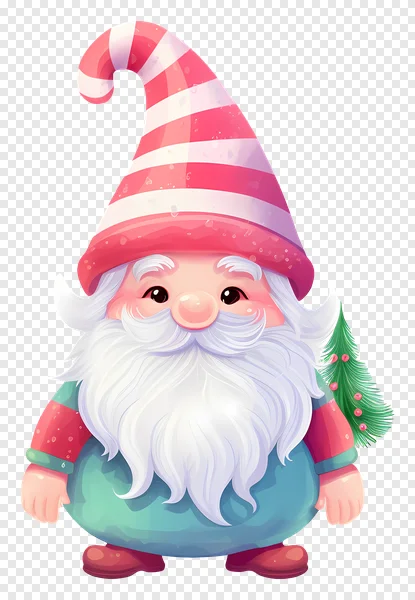 Bring whimsical charm to your holiday projects with this adorable Christmas gnome PNG! Featuring a cute gnome character sporting a vibrant red and white striped hat reminiscent of a candy cane, a fluffy white beard, a pink nose, and holding a small, festively decorated Christmas tree. Dressed in a cozy green and red outfit, this cheerful illustration is perfect for spreading holiday cheer. This high-quality image comes with a transparent background, making it ideal for seamless integration into greeting cards, digital designs, scrapbooking, social media posts, and more. Download this festive elf for free and add a touch of winter magic to your creative endeavors. Ideal for designers, crafters, and anyone seeking charming seasonal imagery.