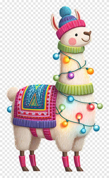 Tags: Christmas lights Christmas llama animal graphic cartoon llama cheerful animal colorful blanket cute llama digital art festive llama free download holiday llama holiday season llama illustration pom-pom hat saddle pad string lights transparent PNG whimsical winter hat winter llama