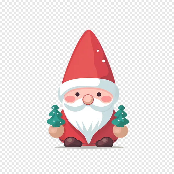 Spread holiday cheer with this adorable free Christmas Santa Gnome PNG! This charming cartoon illustration features a cute, stylized Santa-like gnome wearing a classic red hat and suit, complete with a fluffy white beard and rosy cheeks. He's cheerfully holding two tiny green Christmas trees, ready to add a touch of festive magic to your projects. Perfect for holiday greeting cards, digital designs, social media graphics, web banners, or seasonal decorations. Download this high-quality, transparent background PNG for free and easily incorporate it into your creative work to make your Christmas season even merrier!
