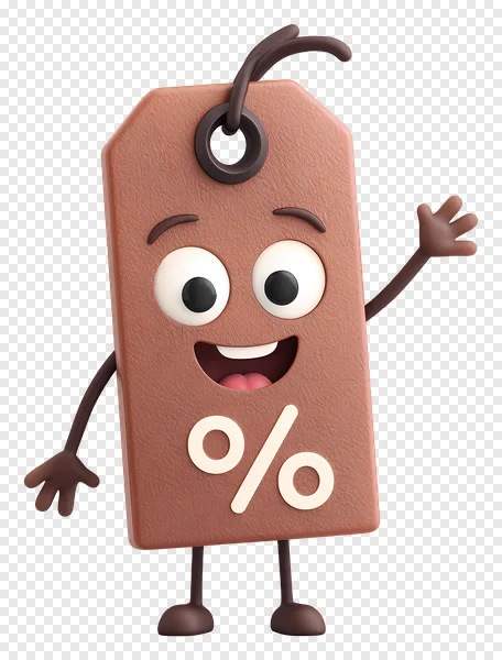 Download this adorable, high-quality cartoon discount tag character PNG for free! Perfect for sales promotions, marketing materials, website graphics, and more. This friendly percentage sign tag with arms and a face will add a playful touch to your projects. Transparent background for easy integration. Get your free download now and boost your visual content!