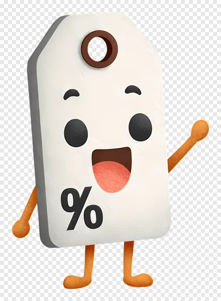 Download this adorable, high-quality discount tag PNG image for free! Featuring a cheerful, cartoon-style sale character with a percentage symbol, it's perfect for marketing materials, website graphics, social media posts, and more. Enhance your designs with this fun and inviting image – no attribution required! Use it to promote sales, discounts, special offers, and create a playful brand image. Get your free PNG download now!