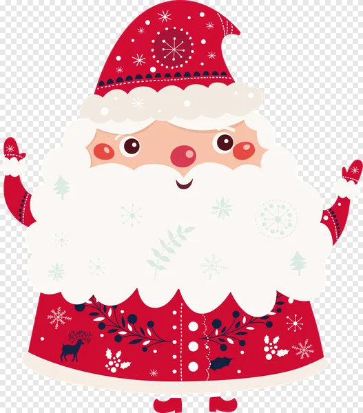 Download our charming Santa Claus PNG for free! This delightful cartoon illustration features a cute Santa in a vibrant red suit, adorned with whimsical snowflakes, holly, berries, and even a tiny deer motif. His fluffy white beard and hat are also decorated with festive details, and he's wearing adorable red mittens. Perfect for adding heartwarming holiday cheer to your Christmas cards, festive banners, social media posts, DIY crafts, or any digital project. The transparent background ensures seamless integration into all your creative endeavors. Get this adorable Christmas character now and spread some holiday joy with this high-quality free download!