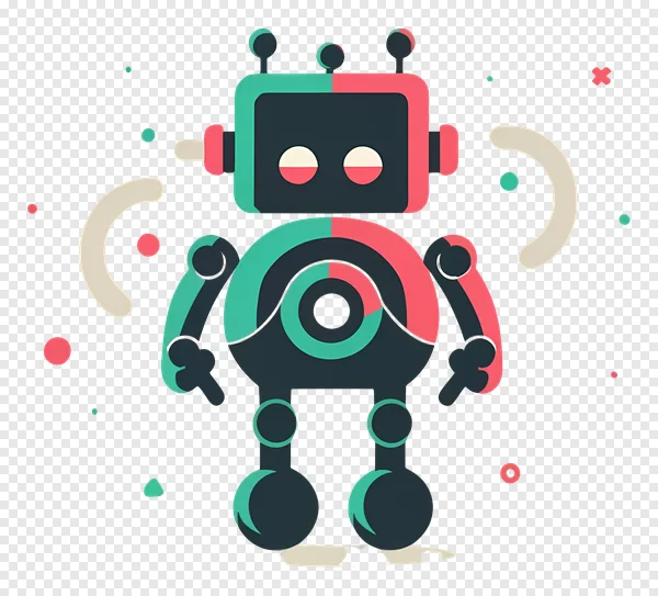 Discover our adorable flat design robot PNG, available for free download! This charming illustration features a friendly, futuristic bot in vibrant teal, coral, and cream against a sleek dark background. Perfect for adding a touch of modern tech and AI aesthetic to your presentations, websites, educational materials, or personal projects. Its clean lines and appealing color palette make it versatile for various digital and print applications. Enhance your creative work with this high-quality, transparent robot graphic. Download now and let this cute digital companion bring your ideas to life!