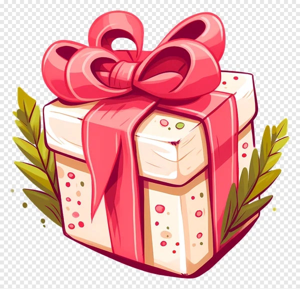 Download this adorable pink gift box PNG image for free! Perfect for birthdays, holidays, or any occasion. This high-quality illustration features a charming present with a large pink bow and decorative leaves. Use it for graphic design, social media, stickers, or to add a festive touch to your projects. Transparent background for easy integration. Get your free download now!