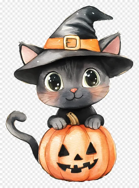 Tags: adorable autumn black cat cartoon cat cute fall free png graphic halloween holiday illustration jack o lantern october png pumpkin spooky transparent background watercolor witch hat