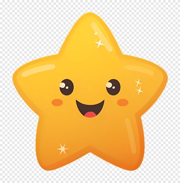 Download this charming, free Happy Yellow Star PNG image to instantly add joy to your creative projects! This adorable cartoon star boasts a wide, cheerful smile, rosy blush cheeks, and captivating sparkling highlights, all rendered in a vibrant yellow and orange gradient. Its transparent background makes it incredibly versatile for seamless integration into digital designs, social media graphics, educational content, presentations, or fun crafts. Perfect for kids' themes, reward systems, or simply as a delightful emoji. Get this high-quality, expressive star clip art now and let your designs shine!