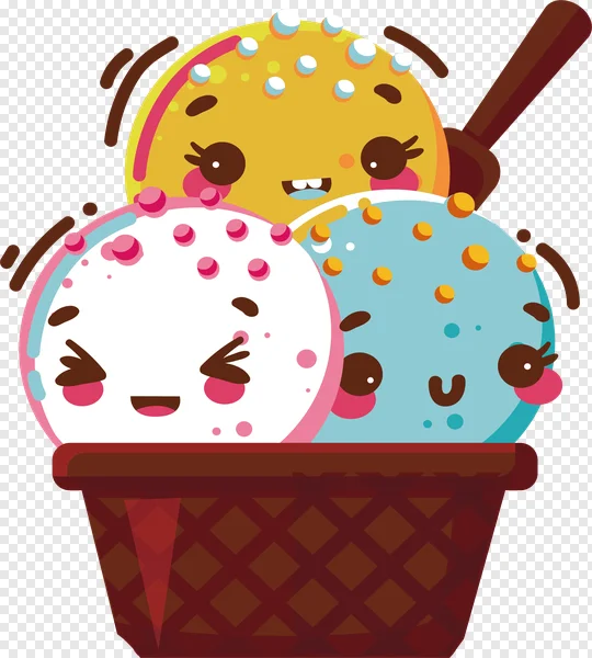Download this adorable kawaii ice cream cone PNG for free! Perfect for adding a touch of sweetness to your projects. This high-quality image features three scoops of colorful, smiling ice cream in a waffle cone. Use it for graphic design, stickers, social media, or any creative endeavor. Get your free download now and brighten up your designs with this charming illustration!