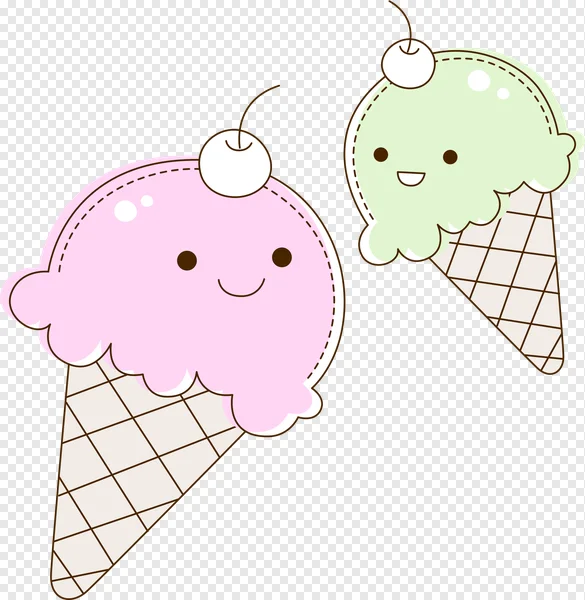 Download this adorable, free kawaii ice cream PNG! Featuring two smiling ice cream cones – one pink and one green – with cute cherry toppings. Perfect for digital art, stickers, scrapbooking, kids' projects, and adding a touch of sweetness to your designs. High-quality, transparent background for easy integration. Get your free download now!