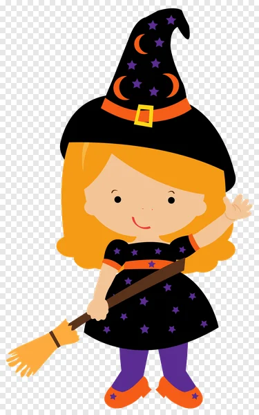 Tags: Halloween Halloween costume broom cartoon witch cute witch fantasy free PNG illustration kids Halloween little witch magic moons orange purple spooky stars vector witch witch girl witch hat