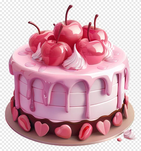 Indulge your creative projects with this delightful, high-quality PNG of a cute pink layer cake! Adorned with glossy pink cherries, swirls of whipped cream, charming heart-shaped candies, and delectable strawberry decorations, this cake features a mesmerizing pink drip glaze against a stark black background. Perfect for birthdays, celebrations, sweet treats, Valentine's Day designs, digital art, social media posts, or any project needing a touch of sugary charm. Download this vibrant, isolated dessert graphic for free and add a delicious pop of color to your next design. Ideal for food bloggers, party planners, or anyone craving a sweet visual.