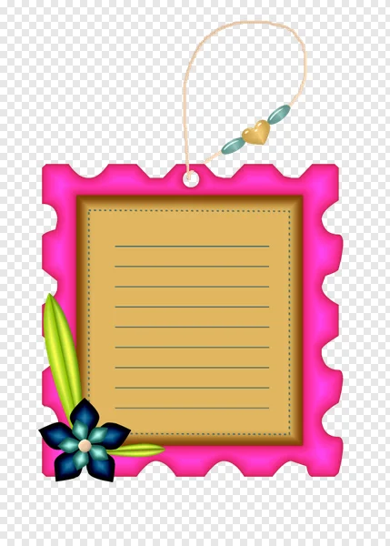 Download this adorable free PNG of a vibrant pink scalloped note card or decorative tag, perfect for adding a touch of charm to your digital projects. Featuring a lined beige writing area, a cute string with a golden heart bead, and a beautiful blue flower and green leaf embellishment, this high-quality graphic is ideal for scrapbooking, gift labels, personalized messages, digital crafts, and more. Its transparent background makes it easy to integrate into any design. Get your free download now!