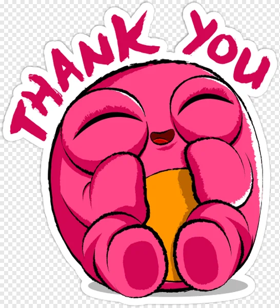 Looking for a charming and free way to express gratitude? Download this delightful PNG of a super cute, round pink cartoon character with a big, joyful smile and closed eyes, joyfully presenting "Thank You" in a vibrant, playful font. This adorable transparent sticker is perfect for adding a touch of kawaii charm and heartfelt appreciation to your digital messages, social media posts, thank-you notes, presentations, or any creative project. Easy to download and ready to spread happiness!